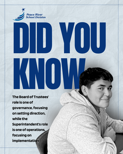 Did you know... The Board of Trustees' role is one of governance, focusing on setting direction, while the Superintendent's role is one of operations, focusing on implementation?